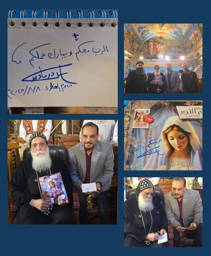 باركنا في اليوم الثاني من صوم ونهضة السيدة العذراء بكنيستنا مار مينا والبابا كيرلس السادس بهرم لايف أسقفنا المحبوب سيدنا نيافة الأنبا دوماديوس أسقف ٦ أكتوبر وأوسيم.. وبارك مجلتكم "رسالة أم النور والعجايبي" بكلمة للبركة وتوقيع نيافته.. له كل الشكر على عظيم محبته..