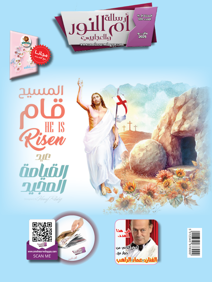 كل شهر وأنتم طيبين وبكل خير صدر مبكرًا بمعونة الرب العدد الشهري الجديد من مجلتكم.. العدد رقم 120.. "رسالة أم النور والعجايبي" عدد شهر مايو 2025 في شكلها الجديد والمتجدد.. * عدد خاص بمناسبة عيد القيامة والمجيد والخمسين المقدسة.. وايضًا تذكارًا لعروس السماء المحبوبة ماريا حسام.. * عدد تقرأ فيه مقالات طيب الذكر البابا شنودة الثالث، والبابا تواضروس الثاني.. والأنبا دوماديوس أسقفنا.. * وهديتنا لكم بانضمام الدكتور ميلاد فايز موسى إلى أسرة التحرير بالمجلة، وبابًا متجدد بعنوان: "تنمية بشرية مسيحية".. * وأيضًا الجزء الثاني من حوارنا الصحفي الشيق مع الفنان "عماد الراهب".. * وفي باب بأقلامهم موضوعًا عن قديسون مجهولون.. بجانب الشعر الروحي لكل محبي الأشعار.. * وفي باب "بركة حياتنا" قدما موضوعًا عن "الاكتئاب عند كبار السن".. علامات لا يجب تجاهلها.. * وقدمنا موضوعًا في باب "العائلة المقدسة" عن: "الحياة الزوجية والحياة العملية" من منظور كنسي.. * وفي باب حول العالم قدمنا موضوعًا مصورًا عن كاتدرائية الكسندر نيفيسكي ببلغاريا.. ⛪ * وفي باب "طريقك إلى طفلك" قدمنا موضوعًا عن "أهم النصائح لفترة الامتحانات".. * ولكي عزيزتي المرأة نقدم أبواب: "صحة وجمال"💇♀🧘♀ و"سفرة وطبلية" لتقديم كل ماهو جديد ومايهم المرأة.. واكلات وصفات لفترة الأعياد🐟 🥩🍔🥓🍗🍖🌭 * كل هذا بجانب أبوابنا الثابتة والمقالات والموضوعات المتجددة التي تهم كل أفراد الأسرة.. ** ولا ننسى أطفالنا الصغار 👦👶 ومجلتهم "ليو كيدز كلوب" مجانا مع العدد وعدد مملوء بالمسابقات والألعاب والتسالي المتنوعة خاصة بعيد القيامة وشم النسيم ⛪☦🎲🎉🎊🎈🏵🎨 عدد تحرص على اقتناءه.. عدد يصلك أينما كنت.. احجز نسختك قبل نفاذها.. وكل عام عام وحضراتكم بخير.